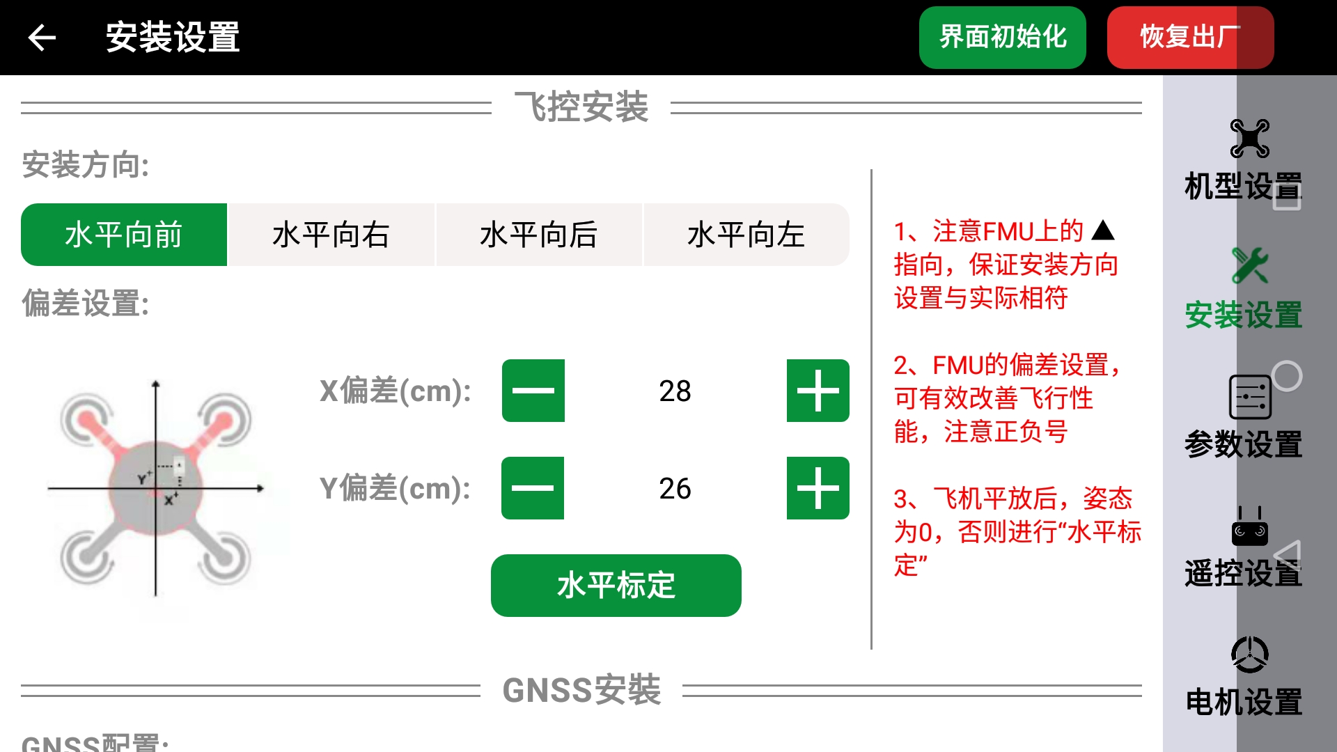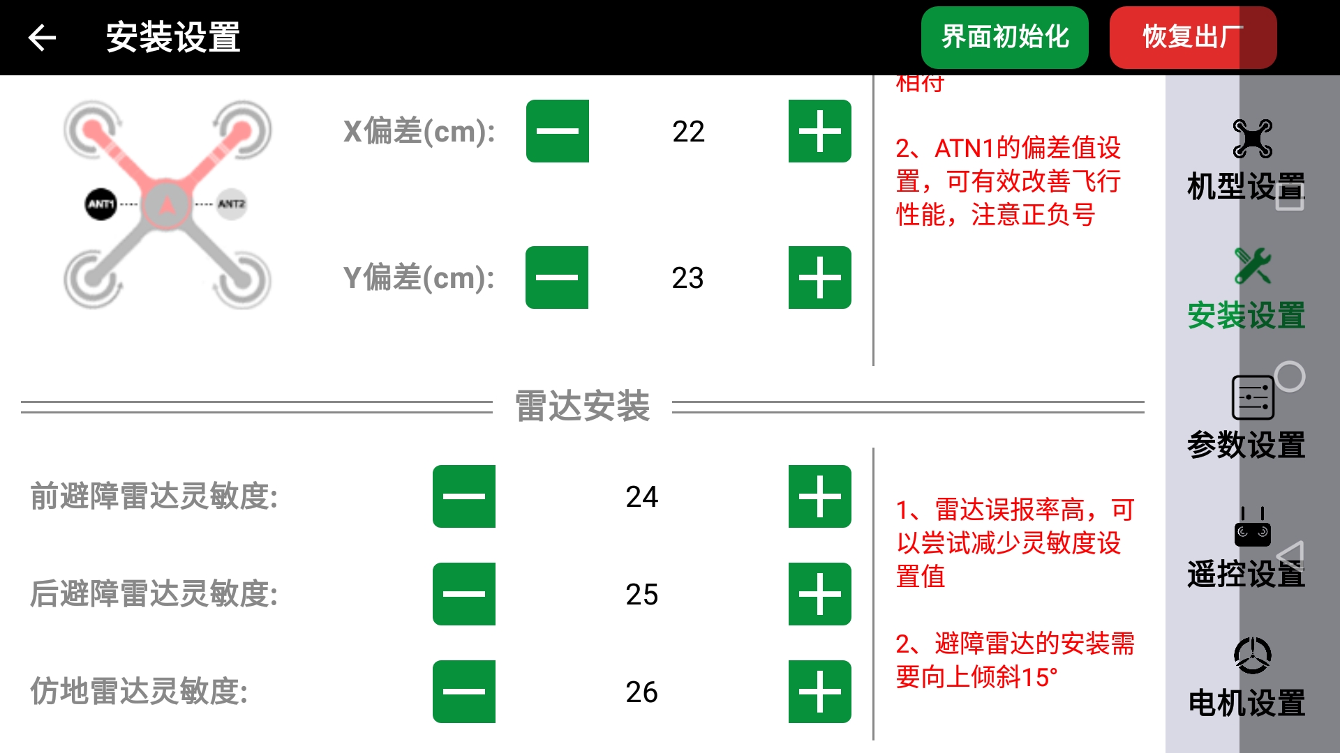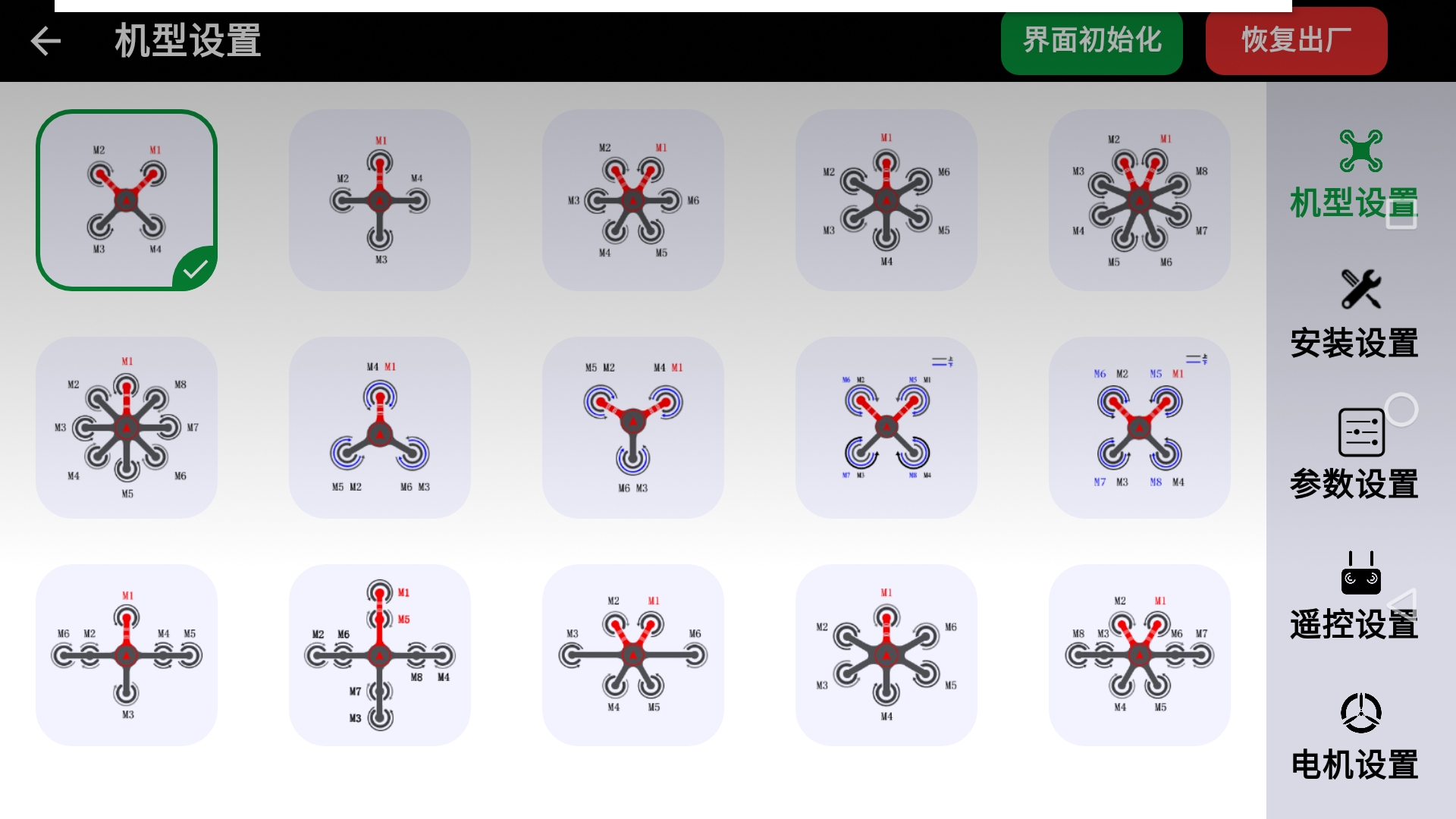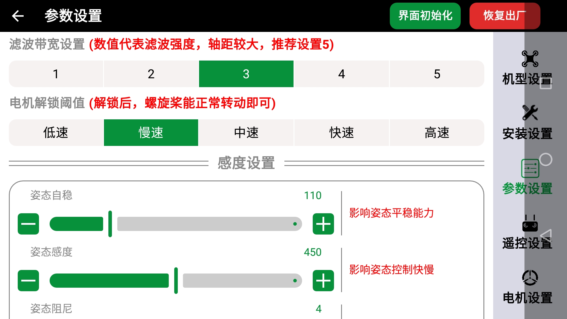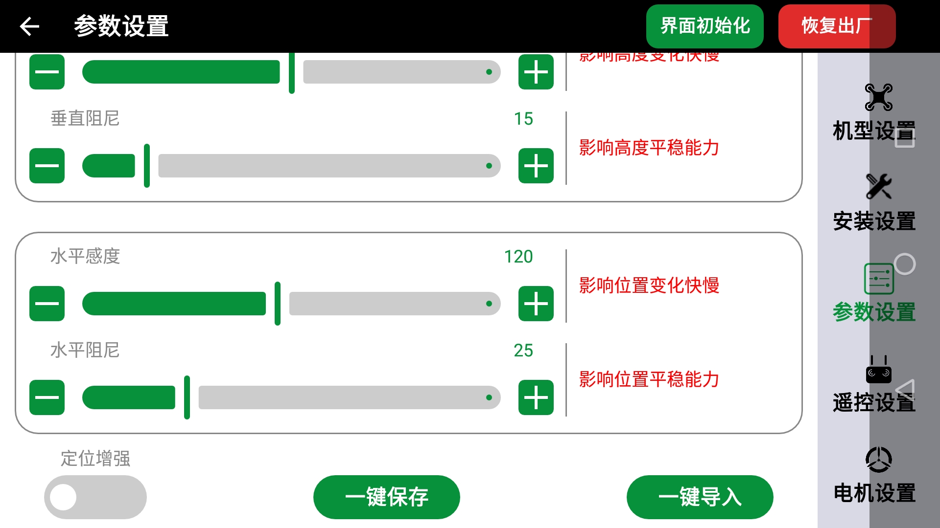 - 可以导入预制的飞控参数