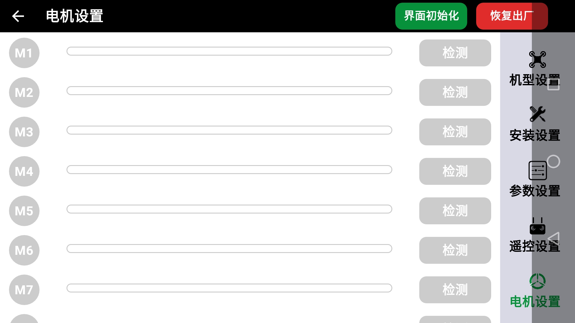 - 卸桨状态下点击检查,观察螺旋桨旋转方向是否和设置一致