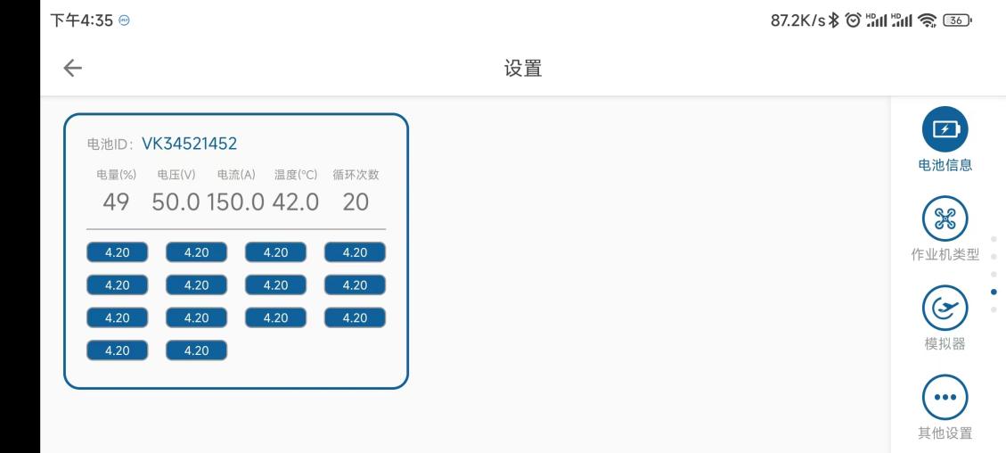 当使用与飞控匹配的智能电池时,会显示智能电池相关信息,如图。