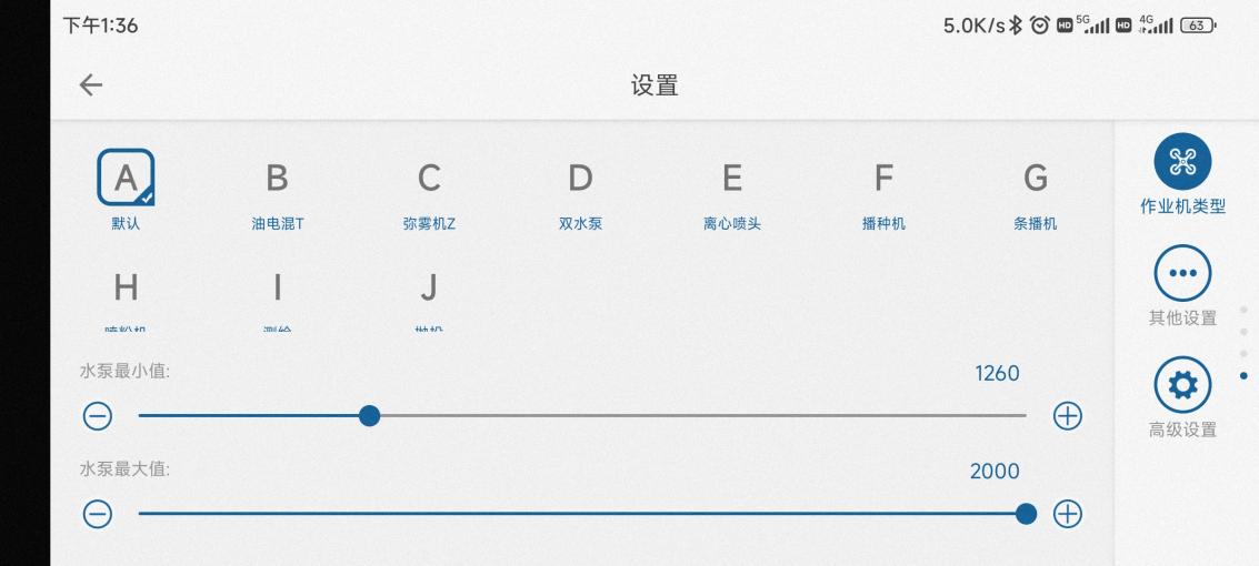 可以配置当前飞机是压力喷头还是离心喷头,是单水泵还是双水泵。