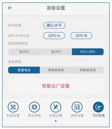 水平校准:当飞控水平出现偏差时,做一次水平校准,一般飞控出厂会校准,客户无需校准。